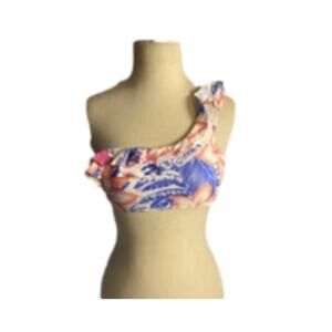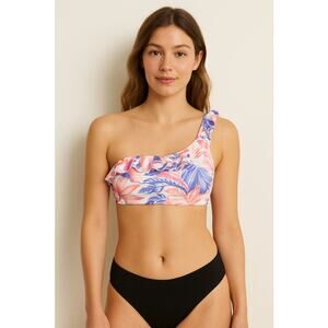 No Boundaries One Shoulder Bikini Top Tropical Ruffle S