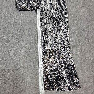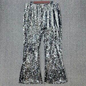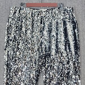 No Boundaries Pants Womens XXL Silver Black Sequin Flared Disco Lined Pull On.