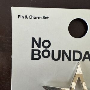 Details: No Boundaries pin and charm set this is a star shaped pin with 3 charms they are silver tone