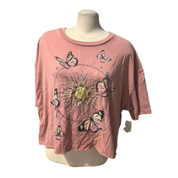 No Boundaries Pink Butterfly & Sun Graphic Cropped T-Shirt Sz XXL Womens
