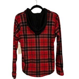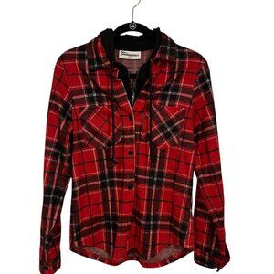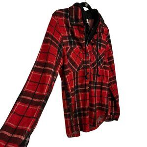 No Boundaries Plaid Red & Black Flannel Hoodie Size: Medium (8-10)