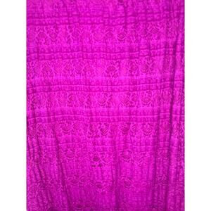 Purple Maxi Skirt with lace outer lining and polyester interior lining (see picture), by No Boundaries. It features an elastic waist with stretch and includes loops for a belt—mid-length slit on both sides of the skirt.