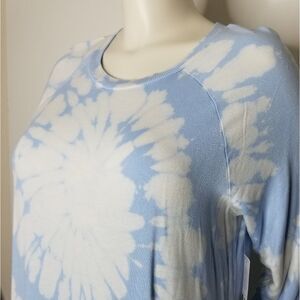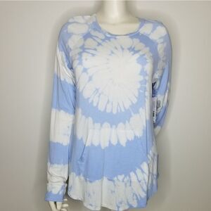 No Boundaries Raglan Pullover Longsleeve Tie Dye Print Top Blue White Size L NWT