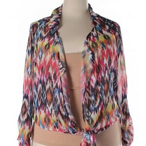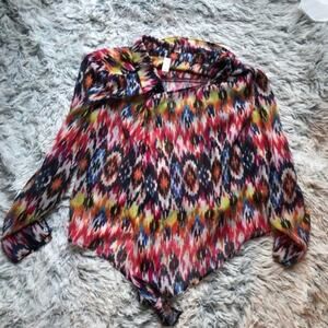 Size 19/XXL from No Boundaries. Charming and colorful tribal print long sleeve tie up blouse. 100% polyester. Minor fraying.