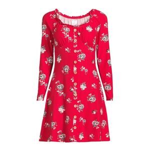 No Boundaries Red Floral Button Detail Knee length Long Sleeve Dress L