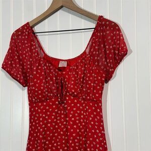 No Boundaries Red Mesh Mini Dress M Puff Sleeve Milkmaid Fairycore Coquette Y2K