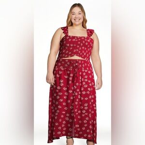 This No Boundaries two piece showcases a vibrant red and white palette in a flowing maxi length, ideal for resort wear. The A-line design is enhanced by a chic rousing, ensuring a stylish and comfortable fit. As a versatile two-piece set, it offers both elegance and ease for any relaxed occasion.