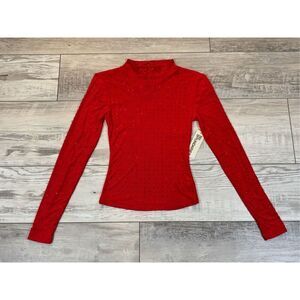 No Boundaries Rhinestone Studded Mesh Top with Long-Sleeves Red NWT Size XXS