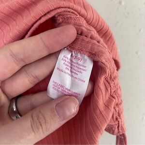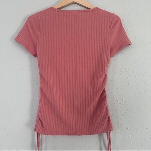 🦋 No Boundaries Ribbed Heart Cutout V-Neck Pink Blouse Top Casual Feminine