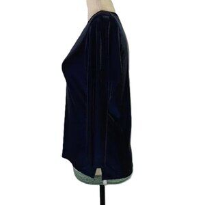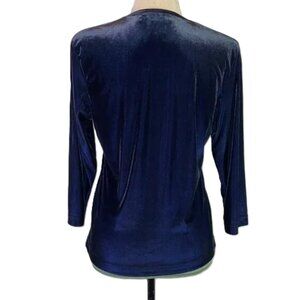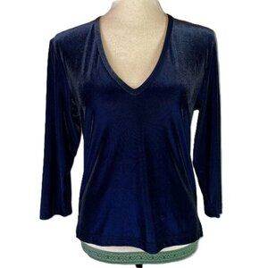 No Boundaries Rich Navy Blue Velour Top V Neck 3/4 Sleeves Size L Jr