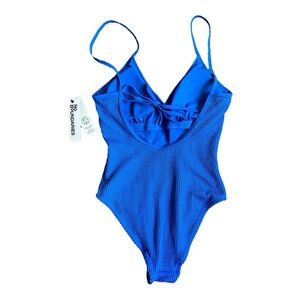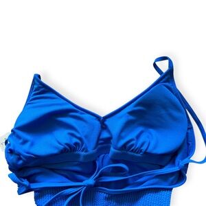 Stylish royal blue one piece with thin adjustable straps. Removable cups. New with tags.