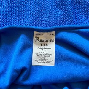 Blue swimsuit. Swimwear. One piece swimsuit. No Boundaries Women's Crinkle High Leg One Piece Swimsuit