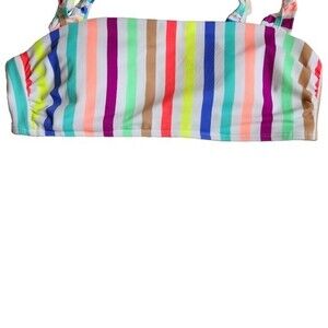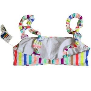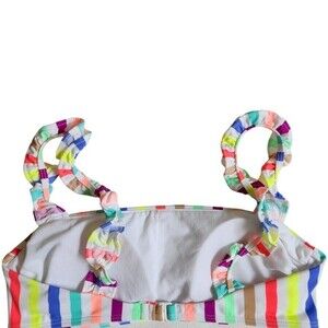 No Boundaries Ruffle Strap Baneau multicolor stripe bathing suit top sz L