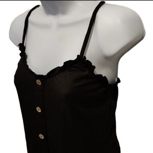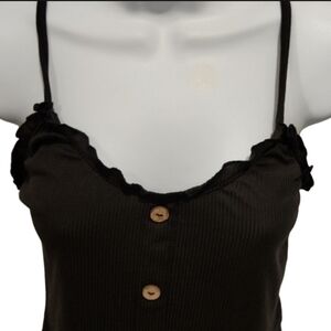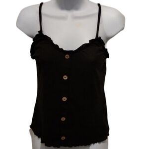 This No Boundaries cami features a faux button-up design with ruffle trim. It is perfect to pair with shorts or jeans.