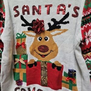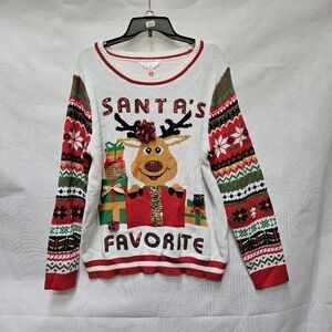 No Boundaries Santa's Favorite Red Sequin Ugly Sweater 100% Acrylic Sz XXXL