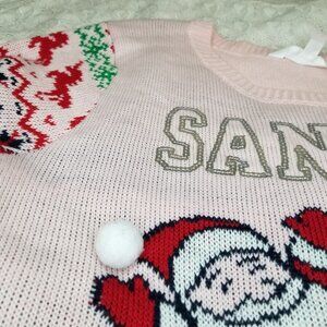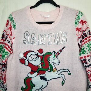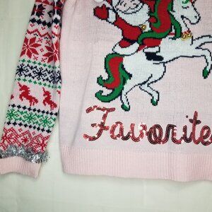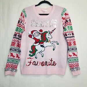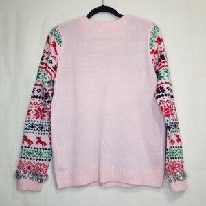 No Boundaries Santas Favorite Ugly Christmas Sweater pink sz L junior bells xmas