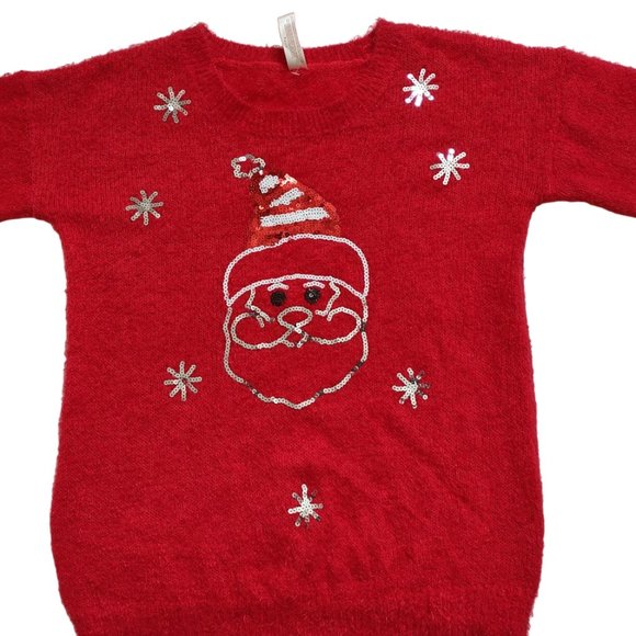Christmas Santa Snowflake Sequin Red Cozy Comfy Sweater Pullover Holiday