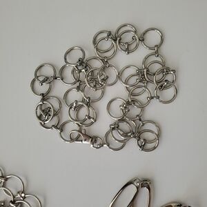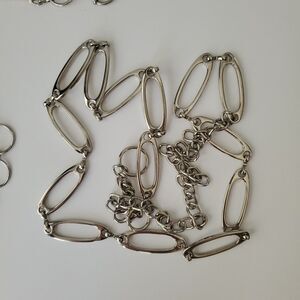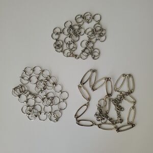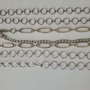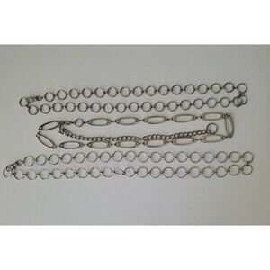 Set of 3 silver tone waist chain belts from No Boundaries. These all vary in size. 2 are the same, being round open circles, and measure 40 and 44" in length. The other is oval measuring 50" in length w/ extender.