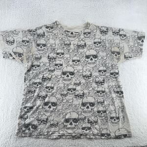 No Boundaries Shirt Mens XL Beige Skulls Sunglasses Graphic Tee AOP
