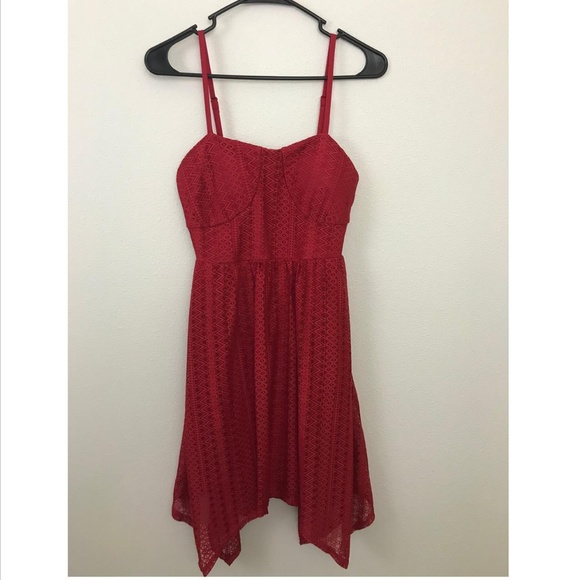 No Boundaries Size Medium 7/8 Red Spaghetti adjustable Strap Bra Cup Lace Dress
