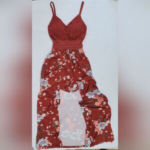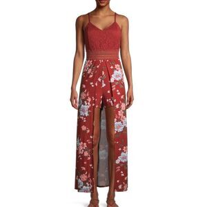 No Boundaries Size Xs Floral Red Maxi Romper Dress