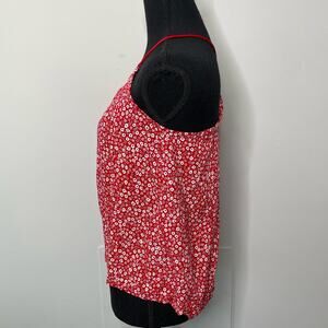 No Boundaries Sleeveless Top Halter Neck Racerback Ditsy Floral Red Small