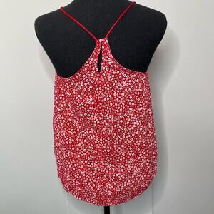 No Boundaries Sleeveless Top Keyhole Back Racerback Floral Pattern Red Small 3 5
