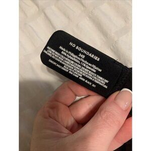Elevate your lingerie collection with this stunning No Boundaries push up bra. The solid black lace design is both chic and comfortable, with a lace-up closure for a perfect fit. This bra is perfect for women who love to feel confident and comfortable in their undergarments. The bra is made with padded cups for added shape and features a 34B size for a perfect fit. The bra is ideal for wearing under any outfit, and the push-up style enhances your natural curves. Get ready to feel fabulous in this bra from No Boundaries.