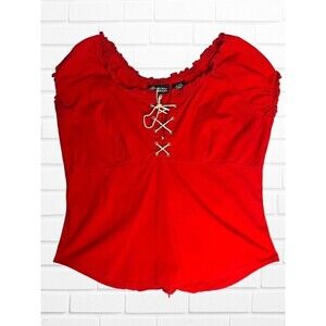 No Boundaries Stretch Junior Women's Size 1X Shirt Y2k Zie-Up Peasant Style Red
