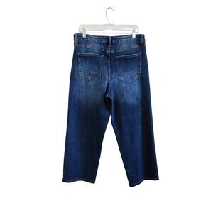 These jeans are made cotton blend fabric ensuring comfort and durability. High-rise fit with a 5-pocket design and a wide leg style, Perfect for any seasons