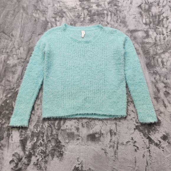 No Boundaries Sweater Womens M (7-9) Juniors Blue Fuzzy Eyelash Knit Pullover