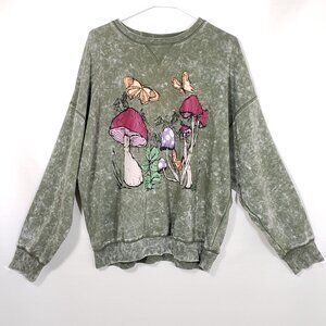 No Boundaries Sweatshirt XL Pullover Mushrooms Tie Dye Recycled