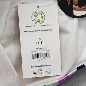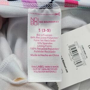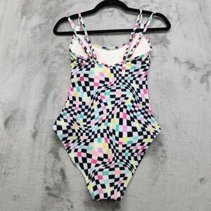 No Boundaries Swimsuit Womens Size S (3-5) Multi-Strap One-Piece High Cut Summer Shelf Bra Removable Cups Moderate Coverage High-Cut Legs Scoop Neckline Adjustable Double Straps Pull-on Styling Multicolor Psychedelic Funky Swirl