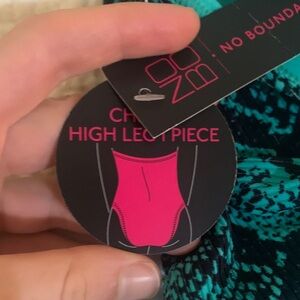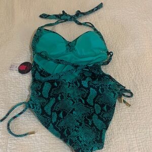 No Boundaries Teal and Black Snakeskin Halter One Piece Swimsuit
