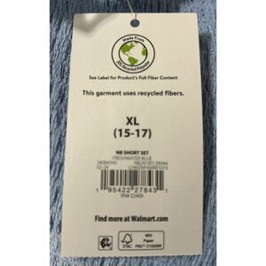 The No Boundaries Textured Cami & Short Set is a stylish 2-piece outfit set in size XL, featuring a solid blue color with a textured design. The set includes a sleeveless cami with a scoop neckline and adjustable straps, paired with a pair of shorts with an elastic waist and 3-inch inseam. Made of a blend of polyester and spandex, this pullover set is machine washable and easy to care for. Perfect for teens and young women looking for a comfortable and trendy outfit option.
