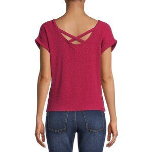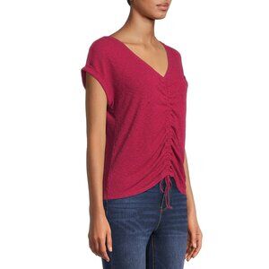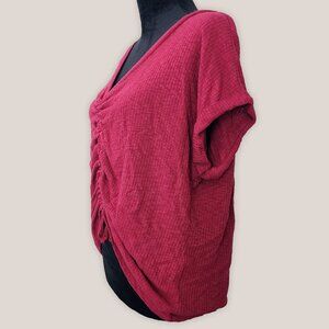 No Boundaries Tie Ruched Front Top Criss Cross Back Ribbed Blouse Berry Red
