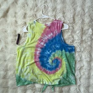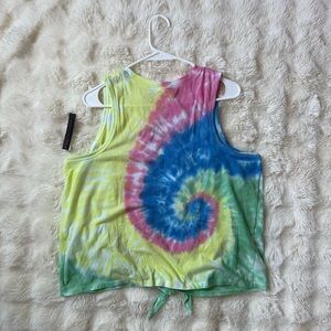 Brighten your wardrobe with this tie-dye tank top. Features a swirl of vibrant colors. Perfect for casual outings.