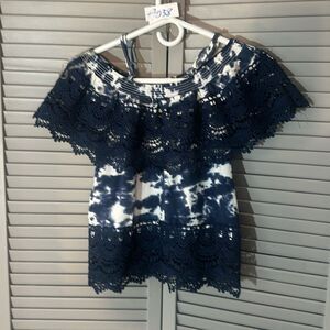Pre-owned No Boundaries Top Women med. Blue Off the Shoulder Ruffle Lace Adjustable Strap
