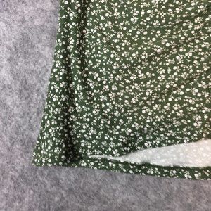 No Boundaries Top XXXL 21 Juniors Womens Boho Cottagecore Green Ditsy Floral Print Cutout Front Short Sleeve Casual Jersey Knit Buttersoft
