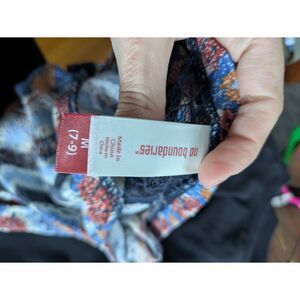 No Boundaries Tribal Print Lace Back Dolman Top. Short dolman sleeve top with round neckline. Twee knit top with zigzag Aztec print. Open back with black mesh lace detail.