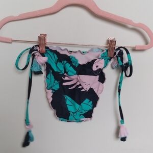 No Boundaries Tropical Bird and Leaf Print Side Tie Bikini Bottoms Small