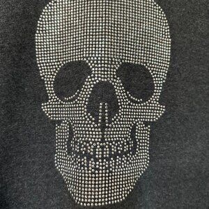 Rhinestone skull graphic adds a bold, rock-inspired style
