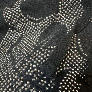 Stylish gray hoodie with a hood, decorated with a large rhinestone skull print. It has a convenient kangaroo pocket, soft warm lining and a comfortable loose fit. Perfect for creating a street style look, evening outings or everyday wear.