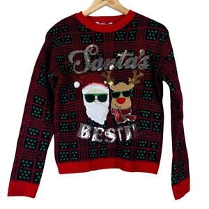 No Boundaries Ugly Christmas Sweater Juniors S Red Green Santa Reindeer Holiday