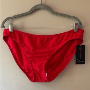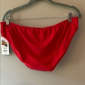 Bright red swimwear bottoms from No Boundaries. Stylish and eco-friendly.