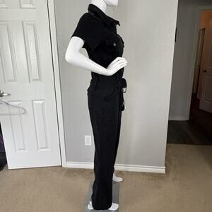 The No Boundaries Vintage Y2K Jumpsuit in XL size is a stylish and versatile piece perfect for a variety of occasions. This slim flare boiler suit coveralls features a collared neckline, zip closure, and belted waist for a flattering fit. Made from fabric with spandex for comfort and stretch, this one-piece jumpsuit also includes pockets for added convenience.