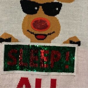 TAGS: No Boundaries "Sleigh/Sleep All Day" Christmas Sweater with Sequins Pompoms & Jingle bells - Size XXL Ugly Christmas sweater size XXL Xmas sweater size XXL Rudolph the reindeer ugly charismas sweater Ugly holiday sweater holiday sweater with 3 d accents holiday sweater with sequins Christmas party sweater office holiday party sweater White christmas sweater plus size Christmas sweater womans christmas sweater womans ugly christmas sweater womans ugly xmas sweater ugly christmas sweater work Festive sweater XXL holiday outfit xxl Holiday Sprit crewneck sweater cozy knit sweater Holiday Sweater