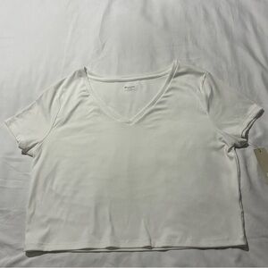 Chic white crop top with a flattering V-neck. Ideal for casual outings.