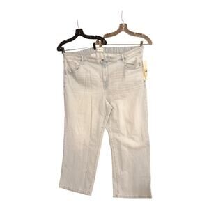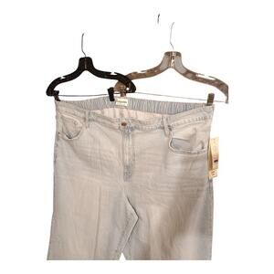 The first picture is the best color match. New with tags please review the photos measurements are in them, elastic back will add a couple inches if needed. Has a lot of stretch. No Boundaries Wide Leg Jeans in light wash with destressed edges are a stylish and comfortable option for women's plus size 3X. Made from a cotton blend denim fabric, these jeans feature a 16-inch rise, 31.5-inch inseam, and 5-pocket design with accents on pockets and leg hem. The wide-leg style offers a relaxed fit, while the elastic waist and easy-care features make them a versatile option for all seasons. Perfect for the bohemian and hippie-inspired woman looking for a fashionable and practical wardrobe staple.