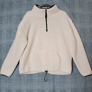 No Boundaries Women Jacket Sz 2XL Sherpa Pullover1/4 Zip Long Sleeve White